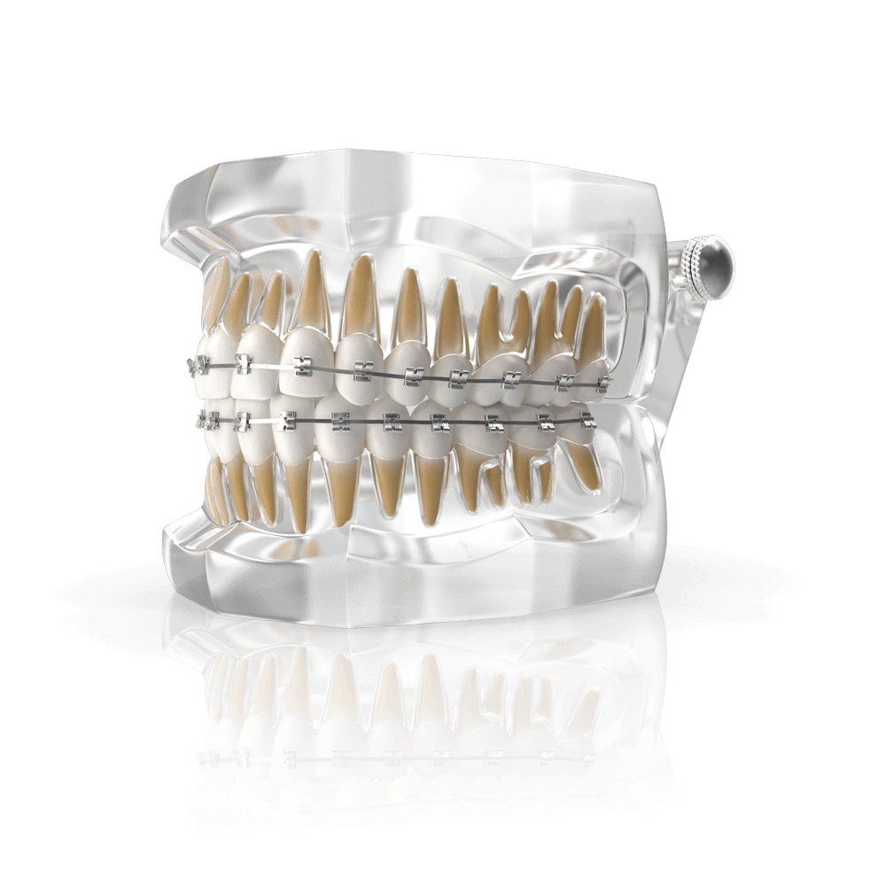 The most recognizable type of braces. An all-time favourite! A traditional technology that uses metal brackets and rubber elastics tightened every month throughout the treatment to get you to the finish line.